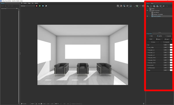 【ライトミックス】とは、レンダリング計算後にライトの強さや色を調整できる