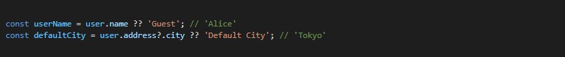 ??演算子は、左側の値がnullまたはundefinedの場合に、右側の値を提供します。
