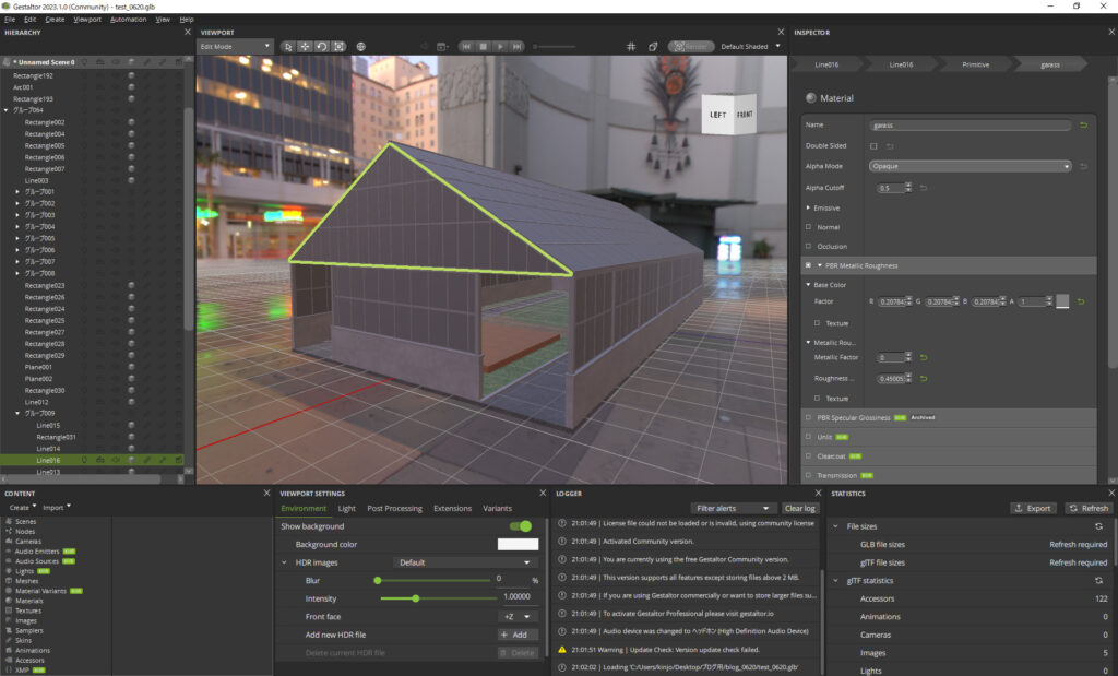 現在開発中の3Dコンテンツでの連携のためglbデータで書き出す必要があるのですが、
