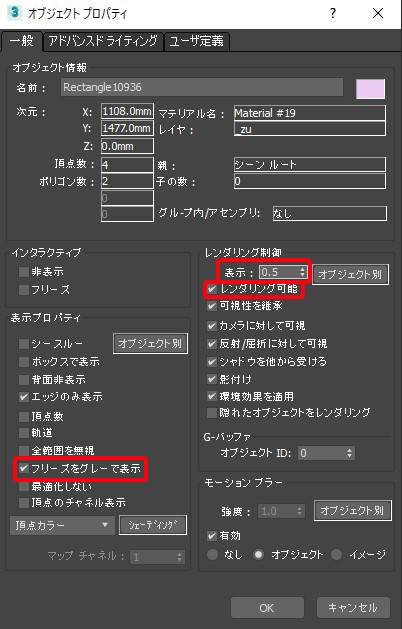 オブジェクトプロパティからフリーズをグレーで表示を解除
