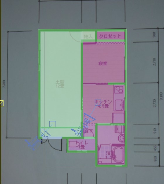 この時実際のサイズのあたりを取り、画像の基点を図面の角に合わせることで