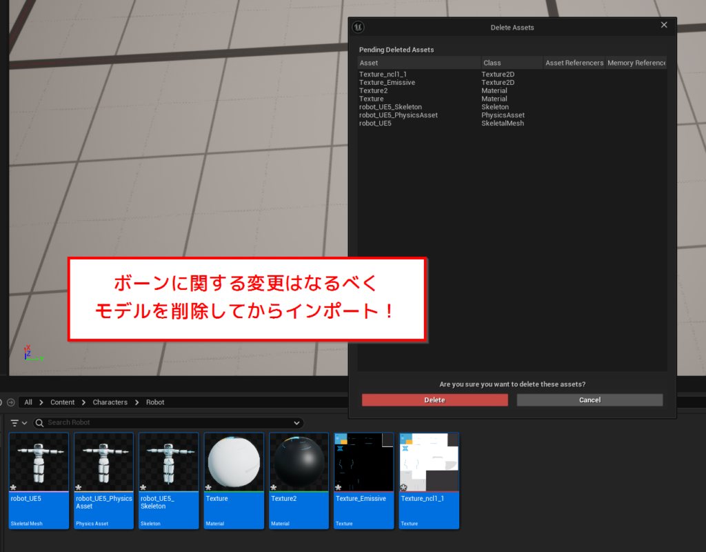 UE5で最初にインポートしたモデルは余程なことがない限りは、いったんすべて削除してから導入しなおしてください。