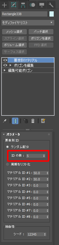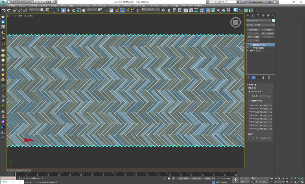 使用する機能はランダムに貼分ける際に良く使われるモディファイヤ「要素別マテリアル」。