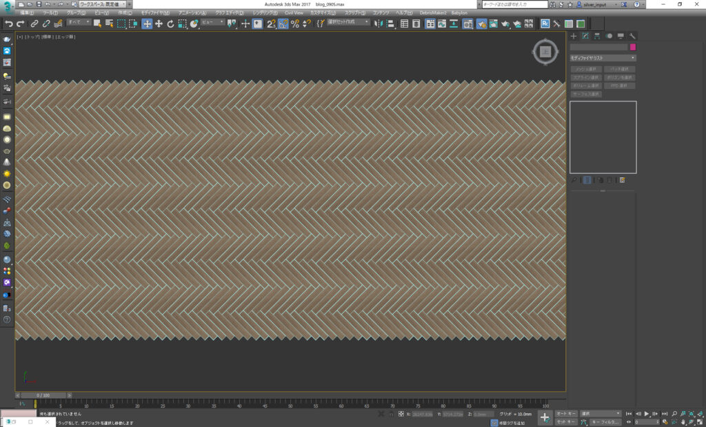 先ほど作成したフローリングにマテリアルを割り当て、「要素別マテリアル」モディファイヤを適用。