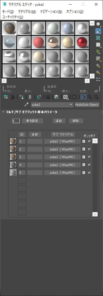 貼りたいテクスチャをマルチサブオブジェクトで一つにまとめます。