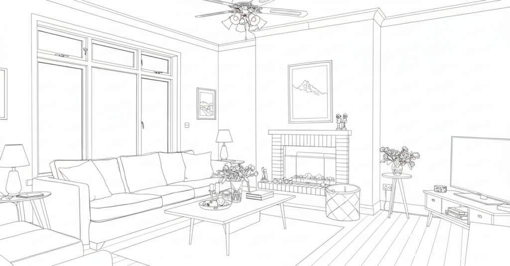 この画像をGeminiに読み込ませて、「背景を含め、全体を真っ白なキャンバス上の線画のアウトラインパースに変換してください」といった指示を与えてみました。