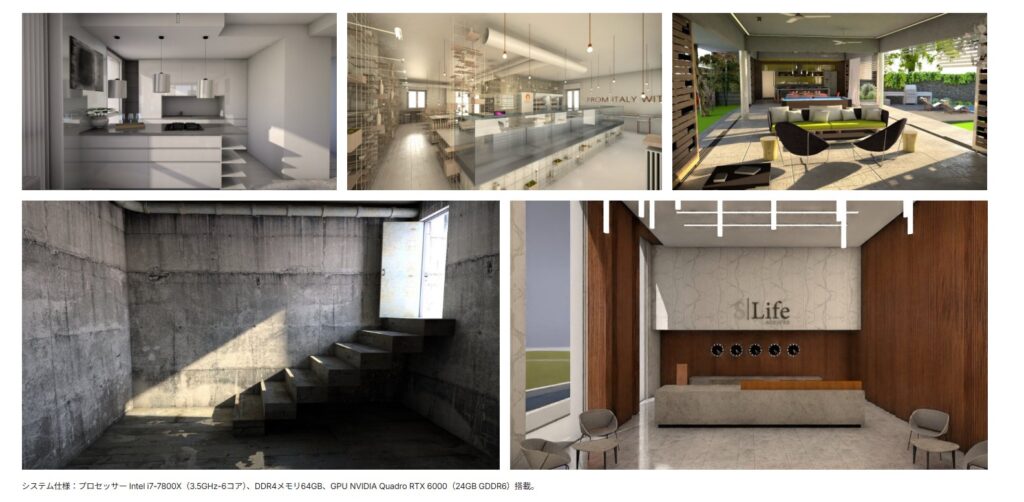 私が良く使うV-Rayは建築ビジュアライゼーションの王様であり、CPU/GPUの両方に対応する万能選手です。