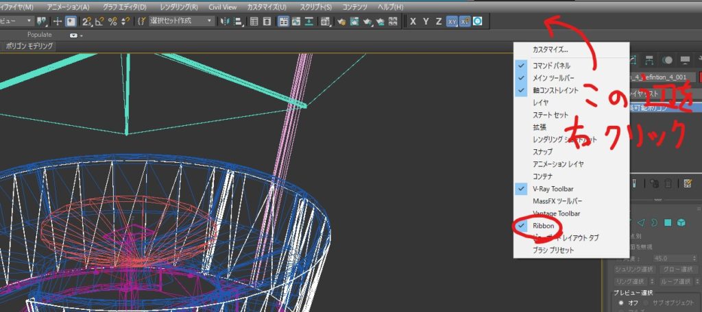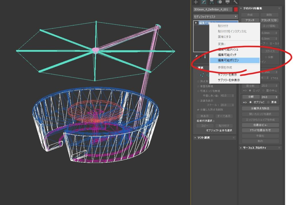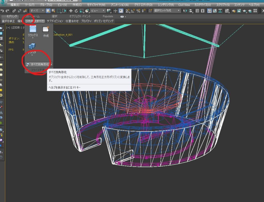 3dsMaxに取り込んだ3Dデータの三角ポリゴンを四角ポリゴンにする方法