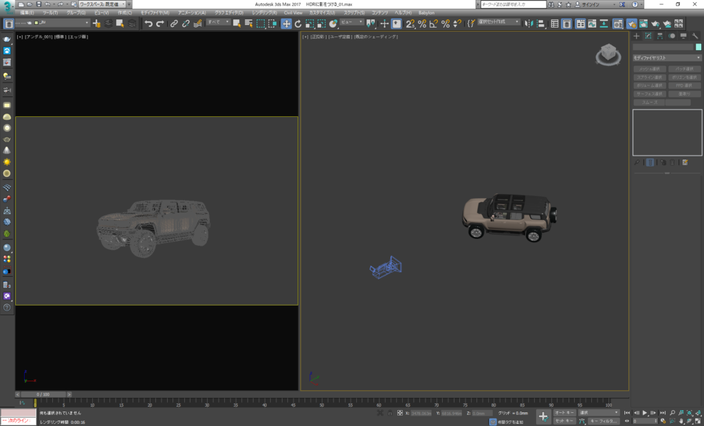 あとはHDRI画像に合わせてVray sunをおいてレンダリングすると、