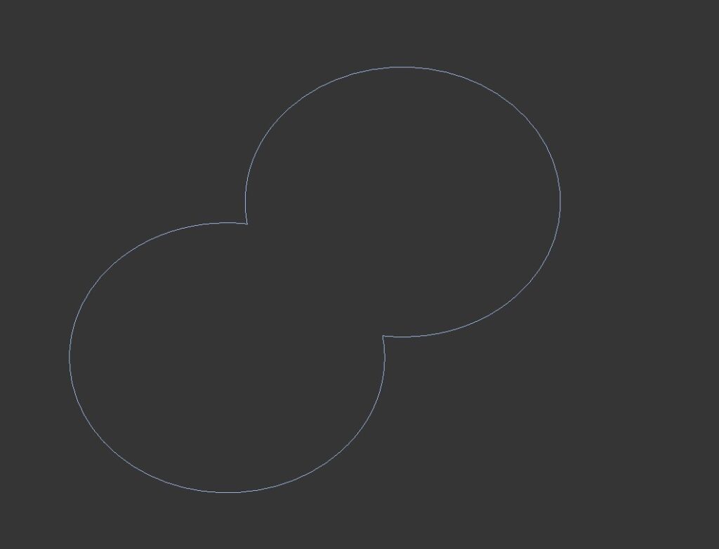 この2つの円のスプラインを交差して重なっている部分を消して