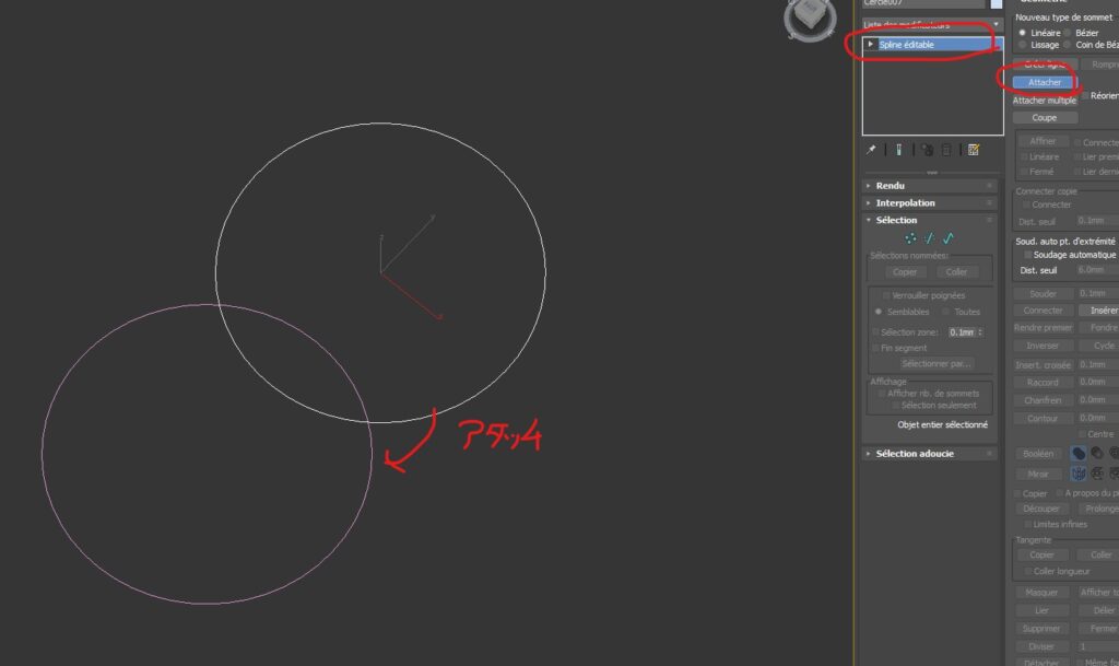 アタッチしたいスプラインをクリックします。