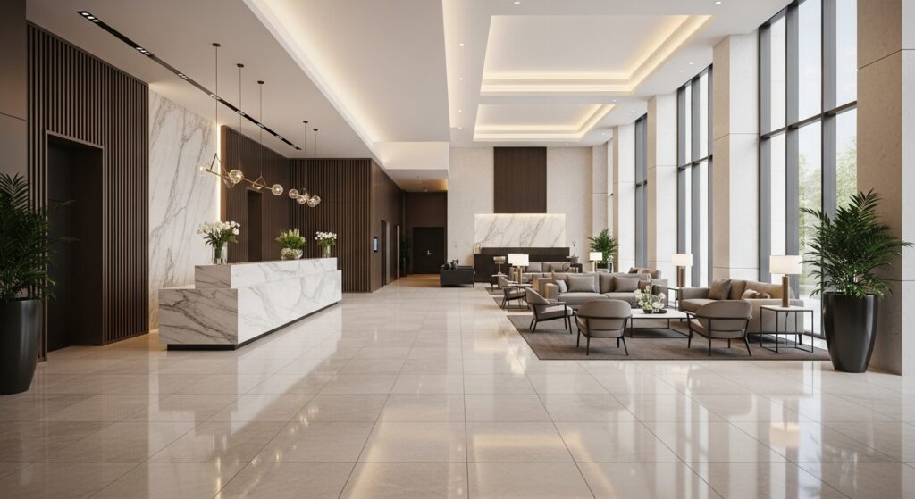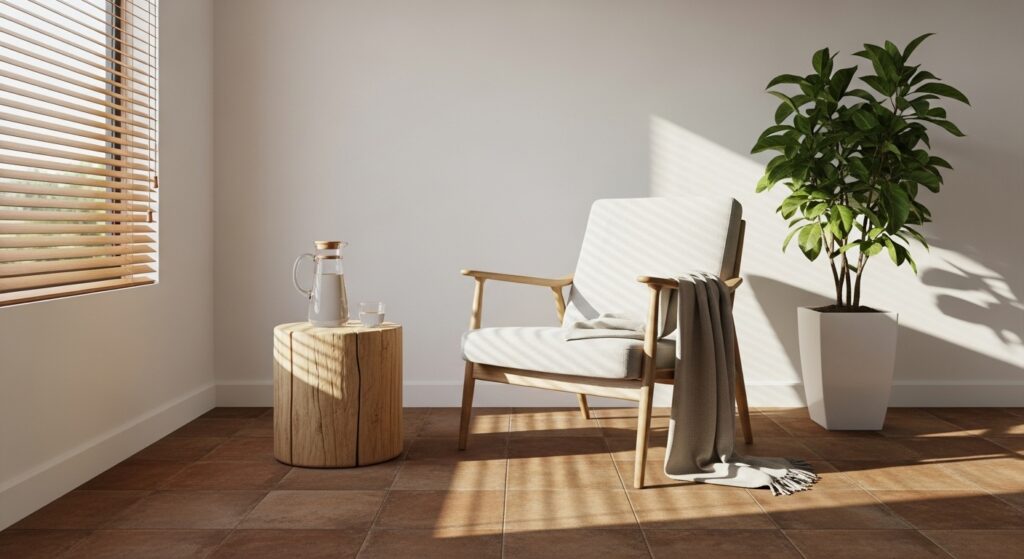 「写真に写っている床材(タイル)をもとに、3DCG用のシームレスな床タイルテクスチャを生成してください。