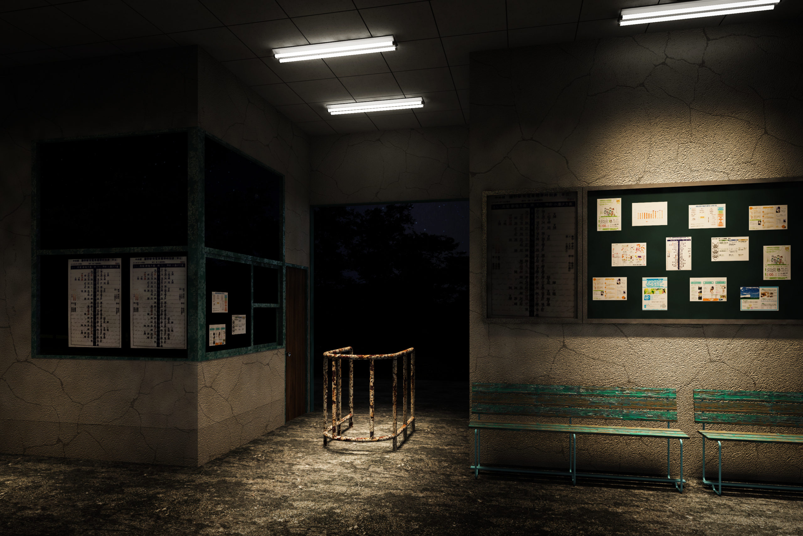 今回はそのきさらぎ駅をイメージして古い駅をパースで制作しました。
