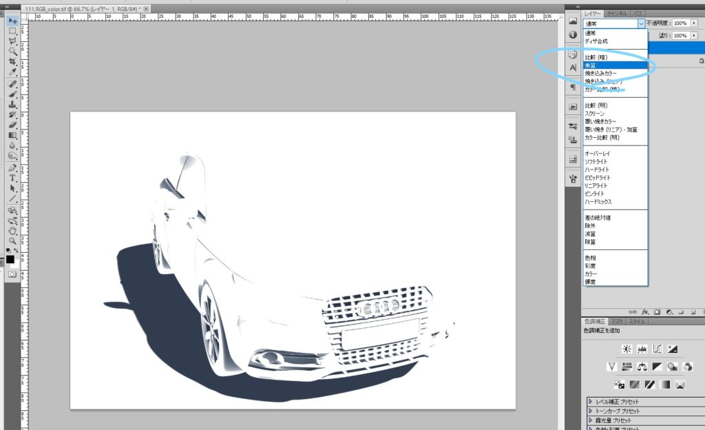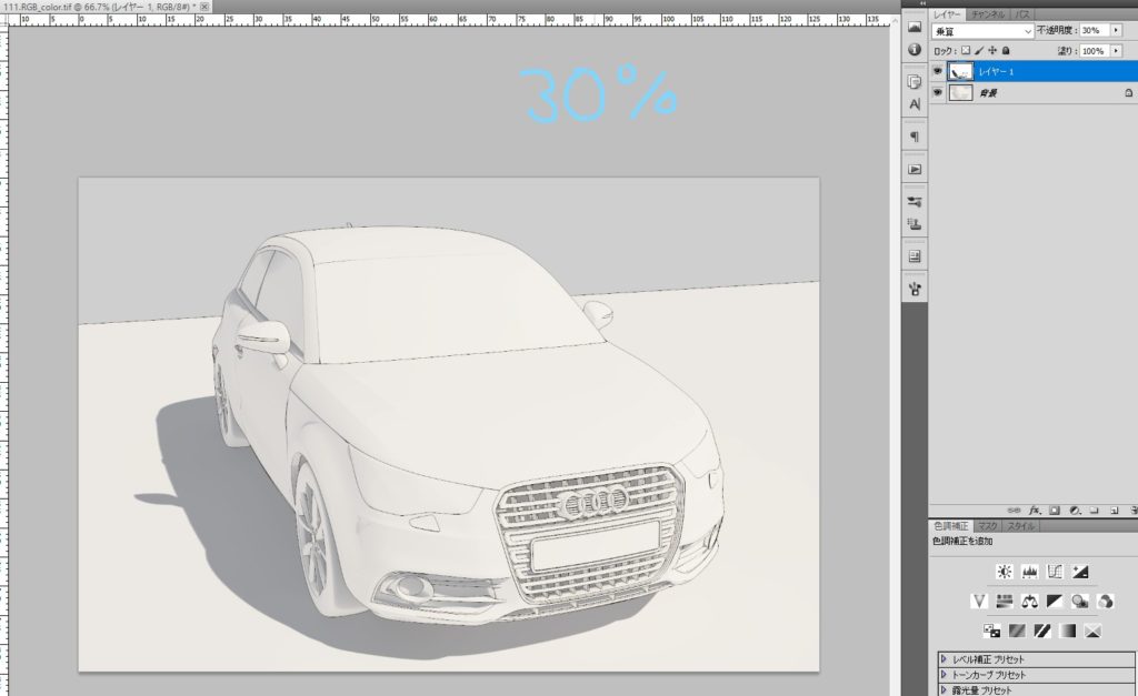 そして乗算後は不透明度で調整すれば影だけ強くできます。